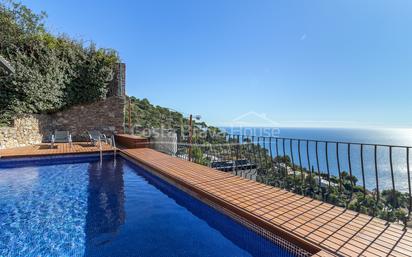 En Aiguablava, entre las suaves colinas de Ses Costes y el Mediterráneo, esta villa de líneas elegantes y amplios espacios ofrece vistas abiertas al mar, privacidad y licencia turística, un privilegio muy valorado en Begur. Arquitectura integrada en el paisaje Con 524 m² construidos sobre una parcela de 1.310 m², esta casa se adapta al terreno inclinado de la urbanización Ses Costes, orientada al sureste. Su distribución escalonada maximiza la luz y las vistas. El acceso principal por la planta inferior conecta con garaje y dos plazas exteriores, desde donde se asciende a las zonas principales abiertas al paisaje. Terrazas que miran al mar Desde el salón se accede a una gran terraza cubierta con vistas a la bahía de Aiguablava. La piscina, rodeada de tarima de madera tropical, prolonga el estar hacia el horizonte. En la planta inferior, otra terraza unida por escalera de caracol amplía las zonas de descanso e integra el jardín mediterráneo. Espacios amplios y luminosos La planta principal ofrece un salón-comedor con ventanales y una zona de lectura con chimenea, junto a una cocina independiente con acceso desde el exterior. En este nivel se ubican dos dormitorios dobles que comparten un baño completo; la planta inferior añade dos dormitorios, un baño y trastero con salida a la terraza de madera. Materiales y confort modernos La vivienda incorpora calefacción por aerotermia y ventiladores de techo, además de persianas eléctricas, puerta blindada, alarma, descalcificador y riego. Las carpinterías de madera y aluminio con doble acristalamiento mejoran el aislamiento, y los pavimentos de entarimado y cerámica unifican interior y exterior. La cocina equipa vitrocerámica, horno, lavavajillas y frigorífico. Ubicación y entorno Situada en Begur – Ses Costes, la casa está a 3,5 km del centro y de las playas de Aiguablava y Platja Fonda, con fácil acceso a Girona (50 km) y Barcelona (137 km). Un entorno natural, silencioso y mediterráneo, con privacidad y vistas panorámicas. Una casa pensada para vivir el Mediterráneo Luminosa, sólida y funcional, invita a disfrutar del clima y las vistas de Aiguablava. Su licencia turística vigente aporta versatilidad: ideal como residencia permanente y también para alquiler vacacional.