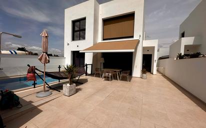 Descubre esta espectacular villa independiente en la Av. Constitución, Formentera del Segura, una propiedad moderna a estrenar. Esta vivienda recién construida está lista para entrar a vivir. La casa cuenta con 3 amplios dormitorios y 2 baños completos, además de una práctica lavandería con lavabo y aseo. En la planta baja, un dormitorio en suite ofrece acceso directo a la piscina, ideal para disfrutar del buen clima. El salón, amplio y luminoso, se conecta a la terraza a través de puertas correderas, y la cocina americana, completamente nueva y ultra equipada, se integra perfectamente en el espacio. Entre sus detalles destacan una persianas eléctricas, un toldo eléctrico para la terraza y grandes ventanas que permiten una excelente entrada de luz natural. Arriba, se encuentran dos dormitorios muy espaciosos: uno principal con vistas a la piscina y la calle, y otro que puede funcionar como oficina o dormitorio para niños. Entre ambos, un baño amplio y moderno. La casa también dispone de un aparcamiento privado, acceso fácil y cómodo, y una zona exterior con piscina perfecta para relajarse. La propiedad se encuentra en una zona muy tranquila, ideal para vivir con comodidad y privacidad. Armarios empotrados, eficiencia energética de letra A y un diseño moderno en perfectas condiciones hacen de esta casa una oportunidad única. ¡No dejes pasar la oportunidad de visitar esta villa impecable y disfrutar de la vida moderna y tranquila que ofrece!