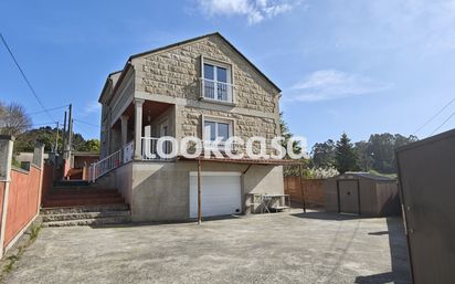 Meis-San Martiño ¡Descubre tu nuevo hogar! Esta impresionante casa unifamiliar de 258 m² es el refugio perfecto para quienes buscan tranquilidad y conexión con la naturaleza. Situada en una parcela privada, a solo 200 metros de la autovía del Salnés, disfrutarás de la comodidad de estar bien comunicado sin renunciar a la paz que ofrece su entorno. La vivienda se distribuye en tres plantas. En la planta baja, un luminoso salón te da la bienvenida, acompañado de una cocina amueblada y equipada con zona de comedor, ideal para compartir momentos inolvidables con familiares y amigos. Además, cuenta con un baño completo y un práctico estudio que puede adaptarse a tus necesidades. En la primera planta, encontrarás tres acogedores dormitorios, dos baños completos (uno en suite), y armarios empotrados que optimizan el espacio. El sótano es un verdadero lujo, con un amplio garaje que tiene capacidad para cuatro coches, así como una zona de caldera equipada con caldera de gasoil. En el exterior, la parcela cuenta con un hermoso jardín, una terraza perfecta para disfrutar del aire libre y un espacio de barbacoa donde podrás organizar reuniones inolvidables. También dispone de una amplia zona de aparcamiento y agua de pozo, además de conexión a alcantarillado y placas solares para agua caliente. No pierdas la oportunidad de vivir en este maravilloso chalet que combina confort, funcionalidad y un entorno natural inigualable. ¡Ven a visitarlo y enamórate!