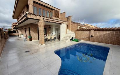 Chalet de esquina de 300 m2 construidos sobre parcela total de 275 m2. Todas las plantas están conectadas por un ascensor privado. Planta Principal con amplio salón, gran cocina equipada y amueblada con oficce, despacho, aseo y salida a porche cubierto y patio con piscina (3x5) climatizada. Planta Alta con 2 dormitorios dobles, 1 baño común y dormitorio principal con baño tipo suite, vestidor y terraza acristalada. Planta Semisótano gran salón multiusos, cocina americana, baño completo, habitación y cuarto trastero. Garaje exterior techado para 3/4 coches. Memoria de calidades de primera calidad, como persianas automatizadas y auto bloqueantes, pintura en estuco y lisa, aire acondicionado por conductos e instalación de placas solares con batería para calefacción y suministro eléctrico de toda la vivienda. Ubicada en una de las mejores zonas residenciales 'El Pijorro', año de construcción 2007. #ref:HAB_588