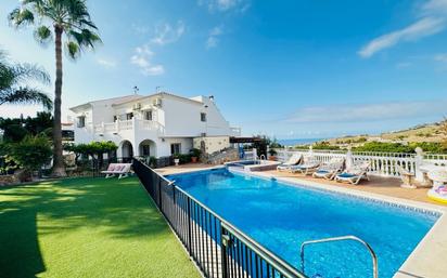 ¡¡EXCLUSIVA!! Villa de lujo en Nerja. Consta de 300 m2 construidos de vivienda más terrazas en dos plantas y solarium sobre una parcela de 3.000 m2. Calidades excelentes: solería de terrazo, aire acondicionado, chimenea, placas solares, puertas de garaje automáticas, depósito de agua de 30.000 litros,… Consta de 6 habitaciones, 4 baños, 2 cocinas, 2 salones, terrazas, zona de barbacoa, almacén, piscina privada grande y pequeña, garaje y vistas al mar. La finca tiene plantación de aguacates y mangos en producción. Carretera asfaltada hasta la vivienda. Buenas comunicaciones. [IW]