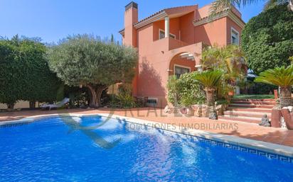 Chalet Independiente de 3 Plantas más Solárium con Jardín, Piscina Privada y Garaje para Dos Coches – Una Vivienda con Encanto y Funcionalidad Si buscas una vivienda donde el espacio, el confort y el entorno natural se integren a la perfección, este chalet independiente es una auténtica joya. Distribuido en tres plantas más solárium, ofrece amplitud, luz natural, calidades excepcionales y una ubicación privilegiada, a tan solo 15 minutos andando de la playa. Distribución de la vivienda Planta baja Accedemos a la vivienda a través de un acogedor recibidor que da paso a un amplio salón-comedor presidido por una elegante chimenea, ideal para las noches de invierno. En esta planta también encontramos un aseo de cortesía y una cocina independiente con office, completamente amueblada y equipada con electrodomésticos. Desde la cocina accedemos a una práctica galería con patio. Los suelos de mármol realzan la luminosidad y la elegancia de esta planta. Primera planta La zona de descanso se distribuye en 4 habitaciones con armarios empotrados y 2 baños completos. El dormitorio principal de techos abuhardillados altos que le otorgan un carácter especial, cuenta con un fabuloso vestidor y baño en suite . En esta planta, el suelo de parquet aporta calidez y confort a cada estancia. Sótano La planta sótano es un espacio versátil, con un gran salón ideal como zona de juegos, sala de estar o cine en casa. Desde aquí se accede directamente al garaje cerrado, con capacidad para dos coches, y a un trastero perfecto para almacenaje. Exterior de la vivienda El chalet está rodeado por un precioso jardín consolidado, poblado de árboles y plantas que garantizan privacidad y frescura durante todo el año. Cuenta con una amplia zona de barbacoa, marquesina para comedor exterior y una magnífica piscina privada. Las vistas al jardín desde prácticamente todas las estancias de la casa son simplemente fabulosas. Extras y ubicación * Aire acondicionado y calefacción * Espacios amplios y bien distribuidos * Solárium con posibilidad de crear una zona chill-out con vistas despejadas * Conexión rápida a la carretera y autovía * Próximo a colegios, hospital, centros comerciales, y todos los servicios * A solo 15 minutos a pie de la playa Una vivienda pensada para disfrutar cada día, con estancias llenas de luz, detalles de calidad y un entorno natural que invita al descanso. Ideal tanto como residencia habitual como casa de vacaciones. Solicita una visita y enamórate de este chalet único. Tu nuevo hogar te está esperando. NOTA: Para viviendas en venta, el precio de venta anunciado no incluye IMPUESTO DE TRASMISIONES PATRIMONIALES, NI GASTOS DE NOTARÍA Y REGISTRO.