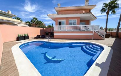 ABFinancial Real Estate presenta en exclusiva este magnífico chalet independiente reformado, construido en 2003 y recientemente renovado, ubicado en una de las zonas más demandadas de La Manga del Mar Menor: Km 1 – Entremares / Urbanización Áncora, a tan solo 250 metros de la Parroquia Salvator Mundi. Una ubicación privilegiada, próxima a playas, servicios, restaurantes y con acceso directo al Mar Menor. La propiedad se levanta sobre una parcela de 602 m2 y cuenta con 316 m2 construidos (180 m2 útiles) distribuidos en tres plantas: • Sótano/garaje (111 m2): amplio espacio con capacidad para 4 coches, equipado con instalación eléctrica, estanterías y frigoríficos adicionales. La puerta del garaje y la puerta de acceso desde la calle son automáticas. • Planta principal: recibidor de entrada, salón-comedor con chimenea de obra, cocina americana reformada con acceso a lavandería independiente, 1 dormitorio y 2 baños completos. Acceso directo al jardín y piscina. • Primera planta: 3 dormitorios dobles con armarios empotrados, todos con salida a una amplia terraza compartida con vistas despejadas al Mar Menor. El dormitorio principal dispone de baño en suite. En total, 2 baños en esta planta. Exteriores La vivienda ofrece un entorno perfecto para disfrutar al aire libre: • Piscina privada y ducha con terraza solárium. • Zonas de chill-out y relax. • Barbacoa portátil con comedor exterior ideal para reuniones familiares y de amigos. • Salida privada desde la parcela a un descampado natural que conecta directamente con el Mar Menor, perfecto para pasear o sacar mascotas. Características y calidades • Vivienda reformada: baños y cocina totalmente renovados. • Aire acondicionado por splits: 1 en salón y 1 en cada dormitorio (5 en total). • Carpintería exterior de aluminio lacado blanco con doble acristalamiento. • Carpintería interior lacada en blanco. • Suelos de gres cerámico en toda la vivienda y antideslizante en exteriores. • Se entrega amueblada y lista para entrar a vivir. En definitiva, un chalet exclusivo, reformado y en la mejor zona de La Manga (Km 1 – Entremares/Áncora), ideal como residencia familiar o segunda vivienda de lujo. Para más información o concertar visita, contacte con ABFinancial Real Estate.