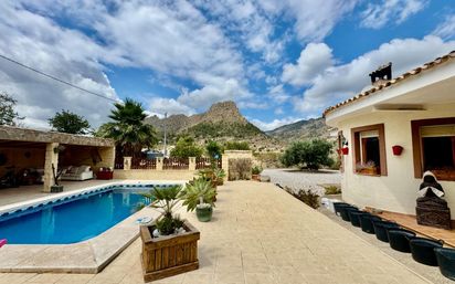 Esta encantadora vivienda está situada en un entorno natural muy tranquilo, a pocos minutos del pintoresco pueblo de Relleu, entre suaves colinas y campos de olivos. La casa, de estilo tradicional y cuidada con esmero, ofrece un ambiente cálido y familiar: - Salón amplio con chimenea y salida a una terraza cubierta - Cocina funcional abierta al comedor - Tres dormitorios luminosos y dos baños - Trastero, leñera y pequeño taller - Piscina privada rodeada de vegetación El jardín, lleno de carácter mediterráneo, cuenta con numerosos olivos maduros, así como higueras, naranjos, granados y almendros. Dispone de pozo propio y sistema de riego por goteo. La ubicación es ideal para quienes buscan paz, privacidad y contacto directo con la naturaleza, sin renunciar a la cercanía del pueblo ni a la costa, que se encuentra a menos de una hora. Una casa perfecta para disfrutar de una vida tranquila, rodeado de lo esencial.