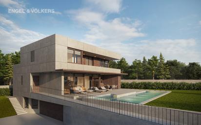 Chalet a cuatro vientos de diseño en construcción, de 385m2, de los que la vivienda son 385m2 más 43m2 de porches, jardín perimetral a la vivienda y con una gran piscina, en parcela de 561 m2. Una casa de arquitectura muy moderna, con amplios espacios. En la planta principal se encuentra la sala-comedor–cocina , con una gran obertura que comunica con la zona exterior donde se encuentra el jardín, terraza y la piscina con un total de 128 m2 construidos . En esta planta se dispone de un dormitorio completo y un baño. Por una cómoda escalera se sube a la planta dormitorios, el principal en suitte, con bañera y ducha, otro baño completo y terraza privada. En esta planta hay tres dormitorios. Se completa con una zona de lavandería y porche. En la planta garaje, al encontrase semienterrada se ha proyectado una sala polivalente, un aseo y un garaje para dos coches con trastero, hace un total de 130 m2. Se accede por la escalera interior o por la rampa exterior desde la calle. La fachada vanguardista, alternando diferentes acabados como aplacados cerámicos y acabados metálicos. Se combina este aplacado con grandes aberturas de vidrio que hacen que todos los espacios se abran al exterior, proporcionando mucha luz. La carpintería exterior será de aluminio con rotura de puente térmico, doble acristalamiento con cámara de aire , persianas motorizadas de aluminio en el color gris de la carpintería, con aislamiento térmico y acústico incorporado. Todos los pavimentos de la vivienda en planta baja y sótano serán de gres porcelánico. En la planta primera, las zonas de dormitorio contarán con parquet de gran calidad. En terrazas y porches gres apto para exteriores. El revestimiento en baños será cerámico de la marca Porcelanosa o similar. Las cocinas, entre los frentes del armario inferior y superior, irán acabadas en porcelánico de la marca Neolith, idéntico al utilizado en la encimera. La puerta de acceso a la vivienda será acorazada, lacada en color blanco Las puertas interiores estarán lacadas en color blanco con acanaladuras horizontales y manetas lisas satinadas en color níquel. La casa tiene preparado para montar un ascensor. La cocina se entregará amueblada con muebles bajos y altos de gran capacidad diseñados para esta cocina en combinación del blanco y el tono de madera. Fregadero es de un seno, bajo encimera, de acero inoxidable, con grifo monomando extraíble de marca Grohe. Equipamiento de electrodomésticos será de la marca Gaggenau. La vivienda llevará un sistema de instalación de aerotermia para la producción de ACS y calefacción. La calefacción será por suelo radiante en planta baja y primera, con producción individualizada. La distribución del aire acondicionado, frío y calor es a través de conductos con rejillas de impulsión y de retorno en salón-comedor, cocina y dormitorios. En garajes se dispone de preinstalación para la recarga de vehículo eléctrico según normativa (ITC) BT 52. El barrio residencial de Les Grases se encuentra en el municipio de Sant Feliu de Llobregat, a pie del Parque de Collserola. A 10 km de Barcelona y cerca de transportes público y aeropuerto.