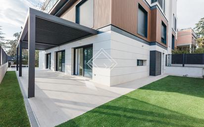 Laura Pérez de GV | PUERTA DE HIERRO comercializa el siguiente inmueble: Magnífico bajo duplex con jardín y piscina a estrenar en la cotizada zona de puerta de hierro. 340 metros cuadrados construidos, 254 metros cuadrados útiles, en una calle muy tranquila. Se caracteriza por su gran luminosidad y calidad de materiales. Cocina equipada con electrodomésticos Bosch. Aerotermia, suelo radiante y refrigerante. Piscina con cloración salina. Pérgola domótizada en el porche. Tres plazas de garaje. Trastero. Cuenta con la seguridad de la colonia de Puerta de Hierro. Distribución: Planta principal: Hall. Cuarto de baño de invitados. Salón comedor de gran tamaño. Cuarto de dormir o despacho con cuarto de baño en suite. Cocina equipada de gran tamaño. Dormitorio de servicio con cuarto de baño. Todas las estancias de la planta baja salen al jardín Primera planta: 3 cuartos de dormir con cuarto de baño en suite. Esta información no tiene carácter contractual. Un porcentaje importante de nuestros inmuebles no aparecen publicados por expreso deseo de los propietarios. Para mas información sobre más propiedades en esta zona entre en nuestra página web.
