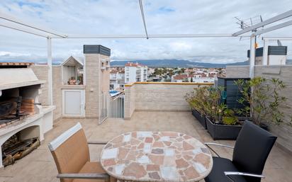 Apartamento en la última planta en pleno centro de Empuriabrava, con ascensor, plaza de aparcamiento y bonitas vistas al canal y a las montañas. Consta de 1 dormitorio, 1 cuarto de baño, salón con cocina abierta y zona con litera. En la planta superior, a la que se accede por una escalera exterior privada, hay un estudio amueblado con cocina, cuarto de baño y una magnífica terraza solárium con vistas al canal y a las montañas. La propiedad también tiene acceso independiente, sin pasar por el apartamento de abajo. Su gran ventaja: la licencia turística, hoy en día muy difícil de obtener en Empuriabrava y especialmente codiciada para una inversión de alquiler.