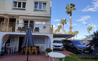 ADOSADO EN PEÑISCOLA 450.000€ REF. CENTROPLAYA PEÑISCOLA MON00212 Magnífica casa adosada a la venta en primera línea de Playa en Peñíscola, vistas magníficas, muy cerca del centro, tiene aparcamiento privado hasta para 4 coches. Es una casa de 155 m2, en dos plantas que están distribuidas de la siguiente forma: En la planta baja un apartamento privado de dos dormitorios, 2 baños de los cuales uno está en la Suite y tiene bañera. Consta de salón comedor y gran terraza con increíbles vistas al castillo y al mar, cocina grande equipada y mucho espacio de almacenaje, vistas inmejorables. La segunda planta consta de 4 dormitorios, todos con vistas, 2 baños (uno de ellos completo con plato de ducha). Todos los dormitorios y la cocina tienen ventiladores de techo. La casa cuenta con barbacoa, y un buen espacio de jardín con terraza. Superficie útil 145 m, en buen estado, se vende amueblado, 2 terrazas, orientación sur. Tiene además doble ventanas. NUESTRA WEB WWW.CENTROPLAYA.COM