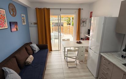 Dúplex reformado con gran terraza soleada en Green Oasis – Campo Internacional Se presenta este magnífico apartamento tipo dúplex situado en el cuidado y demandado complejo Green Oasis, en Campo Internacional de San Bartolomé de Tirajana. El complejo destaca por su excelente mantenimiento, amplias zonas ajardinadas y piscina comunitaria tanto para adultos como para niños, ofreciendo un entorno agradable y relajado durante todo el año. La vivienda se ubica en la parte trasera del complejo, una de las zonas más tranquilas, ideal para quienes buscan privacidad y descanso. Accedemos a la propiedad a través de una cancela exterior que da paso a una amplia terraza privativa, uno de los grandes atractivos del inmueble. Dispone de zona de comedor para cuatro personas y dos hamacas tipo solárium, con orientación que permite disfrutar del sol durante prácticamente todo el día. En la planta principal encontramos un acogedor salón con cocina integrada, completamente equipada, así como un práctico aseo de cortesía. La vivienda ha sido totalmente reformada, lista para entrar a vivir. En la planta superior se sitúa el dormitorio principal, con cama doble y armario empotrado de gran capacidad. En esta planta también encontramos un baño completo con plato de ducha y un pequeño balcón que aporta luz natural y ventilación. Superficies: Superficie construida: 46 m2 Superficie útil total (incluyendo jardín/terraza): 58 m2 Parcela: 38 m2 Ubicación y entorno: Situado en Campo Internacional, una de las zonas más valoradas del sur de Gran Canaria por su tranquilidad, zonas verdes y cercanía a los principales puntos de interés: A 5 minutos en coche de las Dunas de Maspalomas A 5 minutos de la Playa de Maspalomas A 3 minutos del Campo de Golf de Maspalomas A 5 minutos del Centro Comercial Faro 2 A 7 minutos de Meloneras (zona de lujo, ocio y restauración) A 10 minutos de Playa del Inglés Acceso a la autopista GC-1 en menos de 5 minutos A 25-30 minutos del Aeropuerto de Gran Canaria Además, en las inmediaciones encontramos supermercados, restaurantes, farmacias, transporte público y todos los servicios necesarios para el día a día. Una propiedad ideal tanto como inversión (alta demanda en la zona) como para disfrutarla como vivienda vacacional o residencia habitual. ¡Contacta con Elite Real Estate ahora para más información y para concertar una visita y no dejes pasar esta oportunidad! Nota: Gastos e impuestos no incluidos. Los datos son orientativos y pueden estar sujetos a errores u omisiones involuntarias.