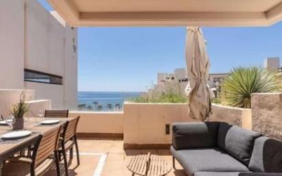 ¡Descubre el lujo y la comodidad en este impresionante ático dúplex en la exclusiva urbanización Bahía de la Plata, situada en la codiciada Nueva Milla de Oro de Estepona! Este inmueble de 162 m2 construidos y 127 m2 útiles ofrece una experiencia de vida inigualable con sus 2 dormitorios, 3 baños y una orientación sur que te permitirá disfrutar de vistas panorámicas al mar desde todas las estancias. El diseño del dúplex es simplemente espectacular. En la planta principal, encontrarás un elegante pasillo de entrada que da paso a un amplio salón-comedor con acceso directo a una terraza de 35 m2, perfecta para relajarte o recibir invitados. La cocina está completamente equipada y el dormitorio principal cuenta con un baño en suite, además de un aseo de invitados para mayor comodidad. La planta superior es un auténtico refugio privado, con un segundo dormitorio, un baño independiente y una terraza con piscina privada, ideal para disfrutar del sol mediterráneo en total privacidad. Además, el dúplex incluye garaje y trastero, lo que añade un plus de funcionalidad y comodidad. Este exclusivo ático se encuentra en primera línea de playa y a pocos minutos del centro de Estepona, combinando así la tranquilidad del mar con la cercanía a todos los servicios. Construido en 2010, el inmueble está en excelente estado y cuenta con calefacción eléctrica bomba de frío/calor, aire acondicionado, ascensor y acceso adaptado para personas con movilidad reducida. Todo esto por un precio de 630.000?, una oportunidad única para vivir en uno de los lugares más deseados de la Costa del Sol. No pierdas la oportunidad de hacer tuyo este magnífico dúplex en Bahía de la Plata. ¡Contáctanos hoy mismo para más información y para concertar una visita!