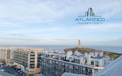 Fantástico Dúplex en Monte Alto, con vistas a la Torre de Hércules! Concretamente en la calle Vía Ártabra disponemos de este piso de 115 metros cuadrados construidos junto al Colegio Victor López Seoane y a un paso de la Ronda de Monte Alto y la Torre de Hércules. La vivienda dispone en la planta baja de salón, cocina con amplia zona de lavadero-tendedero y un baño con plato de ducha. En la planta alta dispone de tres dormitorios y un baño completo, también con plato de ducha. Dispone de un cómodo trastero en planta Entreplanta y de una plaza de garaje a unos 40 metros del portal del edificio. Una gran oportunidad de adquirir un piso amplio, en buen estado y con garaje y trastero en Monte Alto. Llámanos y ven a verlo!