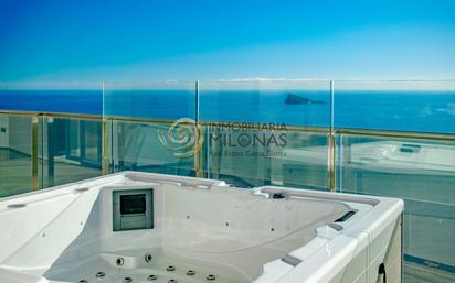Vistas al mar de ensueño desde cualquier zona de la propiedad, vivienda dotada de amplios ventanales donde el principal protagonista es la luz natural y el azul del mar. Con acabados Premium y mobiliario seleccionado a medida y con mucho gusto, cuidando al milímetro todos los detalles para vivir una vida cómoda y lujosa. Sus 186m2 de vivienda con 82m2 de terraza abierta se distribuyen de manera funcional, esta última dotada de un gran espacio con jacuzzi climatizado para 4 personas con vistas despejadas al mar. Características de la vivienda : - 2 dormitorios - 2 baños - vestidor y armarios empotrados - Salón comedor -Cocina totalmente amueblada y equipada con electrodomésticos de alta gama Samsung - Lavadero - 1 cuarto técnico: trastero junto al apartamento, ideal para almacenamiento. - 1 trastero adicional: ubicado junto a la plaza de aparcamiento en el garaje subterráneo. - 1 plaza de aparcamiento: incluida en el precio del apartamento. (posibilidad de comprar otra plaza de aparcamiento aparte del precio) A tan solo 300m de la arena de la playa se ubica el residencial que completa el skyline de Benidorm, pensado para disfrutar de la vida en el Mediterráneo sin límites. Con un total de 277 viviendas, Sunset Cliffs (año de construcción: 2023) cuenta con más de 12.000m2 de zonas comunes, distribuidas en diferentes alturas, asegurando vistas al mar desde todos los puntos: - Piscina climatizada - piscinas comunitarias - piscina infantil con zonas de juegos - gimnasio panorámico - jacuzzis - zonas chill-out - sala Kid’s Club - sala de videojuegos y diferentes pistas de deporte Ven a Benidorm y descubre tu nuevo hogar, Benidorm es una ciudad reconocida tanto por su diversidad de nacionalidades como también por su oferta en el ocio para todas las edades : parques temáticos (Aqualandia, Terra Mítica Aqua Natura), campos de golf, zonas comerciales con variedad de tiendas, bares, restaurantes, salas de baile, discotecas y pubs para todos los gustos. Además, cabe destacar su gastronomía con jornadas diversas como platos de cuchara, arroces, tapas y pinchos o comida internacional. Para más información o coordinar una visita no dude en contactar con nosotros al 673 086 367 o al hola@milonas.es. El equipo de inmobiliaria Milonas estará encantado de atenderte.