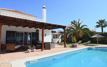 Bienvenido a una fantástica villa de 4 dormitorios en excelente estado, de estilo típico andaluz. La propiedad ha sido recientemente renovada en muchos aspectos y está lista para entrar a vivir y disfrutar de inmediato. En el jardín, repleto de flores y cítricos, encontrará un oasis de paz y estilo. Además, el riego automático le permite dejar el jardín prácticamente desatendido durante largos periodos. En otras palabras, puede usar la villa como vivienda permanente o como segunda residencia con un gran potencial de alquiler. Nuevo Portil es un paraíso de paz y confort con un auténtico ambiente de lujo, a solo unos minutos a pie del campo de golf, el mar, restaurantes, puertos deportivos y el pinar de los mas grande de España. La zona, que combina viviendas permanentes y vacacionales, está repleta de impresionantes y seguros senderos para caminar y andar en bicicleta. Durante 20242025 se realizaron las siguientes mejoras: • Cocina completamente equipada con electrodomésticos nuevos, como lavavajillas, lavadora, frigoríficocongelador (estilo americano), microondas y placa de inducción. • Renovación de la piscina al completo e instalación de nueva bomba de depuradora, etc. • Jardín renovado con césped, árboles frutales y terraza con pérgola. • Riego automático. • Pintado de toda la propiedad, tanto por fuera como por dentro. • Sistema eléctrico renovado para mayor seguridad y estabilidad. Características especiales: • Bodega climatizada. • Aire acondicionado con bomba de calor. • Chimenea con ventilador. • Aparcamiento privado para varios coches. • Suite de invitados con entrada independiente. • Conexión de fibra óptica. La casa cuenta con 4 dormitorios: una suite de invitados con entrada independiente y dos más en la planta baja. Además, el dormitorio principal cuenta con una terraza solárium de 25 m² en la primera planta. Para su comodidad, dispone de tres baños y un aseo. Los dormitorios tienen dos armarios dobles y el dormitorio principal, cuatro armarios