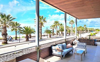 Vistosa i encisadora Planta Baixa a tocar de la Platja a primera línia de mar a Cubelles. El Mediterrani t'entra per la magnífica terrassa de 42 m2, perfectament integrada amb la resta del pis, degut a la distribució que enllaça pis i terrassa a gairebé totes les dependències. Aquesta distribució, moderna, confortable i amplia permet que el pis s'ompli de llum tant a l'estiu com a l'hivern, i de gairebé tot arreu vegis el mar. Cuina i menjador amplis, 2 banys i 3 dormitoris. Ascensor, zona comunitària amb piscina, adaptada i accessible. Al preu hi ha inclòs una plaça de pàrquing prou amplia per cotxe i moto, i un traster.
