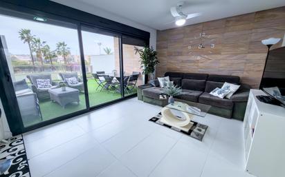 ABFinancial presenta esta exclusiva vivienda en planta baja situada en un elegante residencial privado en Mil Palmeras, una de las zonas más demandadas de la costa de Pilar de la Horadada, a tan solo 250 metros del mar. La vivienda se encuentra dentro de un complejo residencial moderno construido en 2014, formado por tres bloques con excelentes zonas comunes, amplios jardines y espacios para pasear, ofreciendo un entorno tranquilo, cuidado y de gran calidad. La propiedad cuenta con 98 m2 construidos y 83 m2 útiles, distribuidos de forma cómoda y funcional. Al tratarse de una planta baja, destaca especialmente su gran terraza delantera de aproximadamente 25 m2, perfecta para disfrutar del clima mediterráneo, reuniones al aire libre o zona de descanso con vistas despejadas. Además, la habitación principal dispone de una segunda terraza privada trasera, aportando mayor privacidad y ventilación natural. La vivienda dispone de: • 2 dormitorios dobles • 2 baños completos con ducha • Baño en suite en el dormitorio principal • Amplio salón con cocina americana totalmente equipada • Zona de lavandería independiente • Armarios empotrados Se trata de una vivienda seminueva, muy moderna y con excelentes calidades, con materiales de gran calidad y detalles como persianas eléctricas en algunas ventanas. La climatización se realiza mediante splits de aire acondicionado frío/calor, proporcionando confort durante todo el año. La propiedad incluye además: • Plaza de garaje subterránea muy amplia, válida para cualquier tipo de vehículo • Trastero privado El residencial ofrece unas zonas comunes espectaculares, entre las que destacan: • Dos grandes piscinas comunitarias • Gimnasio incluido en la comunidad • Amplias zonas verdes y espacios de paseo La vivienda tiene orientación noroeste, con un ambiente agradable y equilibrado durante todo el año. Una propiedad ideal tanto como residencia habitual, segunda vivienda cerca del mar o inversión, en uno de los residenciales más atractivos de Mil Palmeras. Para más información o para organizar una visita, no dudes en ponerte en contacto con nosotros.