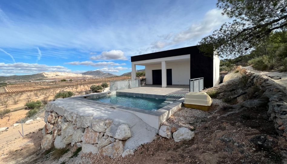 New build villa for sale Cañada de la Leña with pool and stunning views.\n\nThis stunning villa offers spectacular mountain views and is surrounded by vineyards, creating a pleasant and quiet natural environment. The house features three bedrooms, two bathrooms (one en-suite), an open kitchen, and a spacious dining area with sliding doors that lead to a terrace where you can enjoy the abundant sunshine and take refreshing dips in the pool. \n\nThe villa also includes electric blinds, air conditioning and heating for your comfort. An electric entrance gate, and a double garage with direct access to the house, convenience is guaranteed.\n\n La Cañada de la Leña is conveniently located near the town of Pinoso, where you can find all the necessary services and amenities such as bars, restaurants, cafes, shops, a medical center, and ATMs. \n\nAdditionally, this villa offers some of the best views of the interior of the Costa Calida. It is ready for you to move in and start enjoying your new home.\n\nContact us today for more information and to schedule a visit!