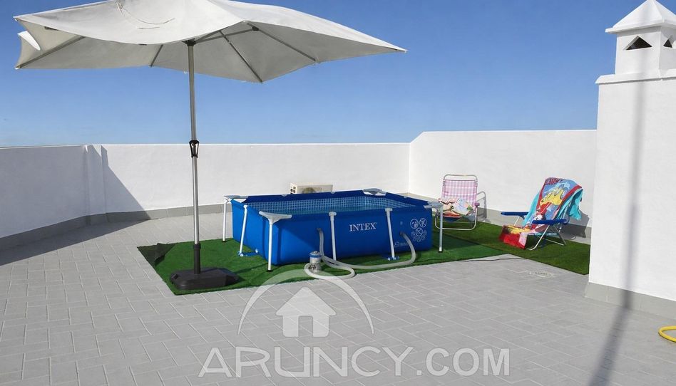 Cuenta con hall de entrada independiente desde el que accedemos por escalera a la vivienda. Al subir, nos recibe un maravilloso patio privado totalmente alicatado, con toldo instalado y espacio para mesa y sillas, ideal para disfrutar al aire libre. Desde el patio tenemos, por un lado, la entrada a la vivienda y, por otro, una escalera que conduce a la azotea, ideal para hacer tu chillout y poner tu piscina en verano .