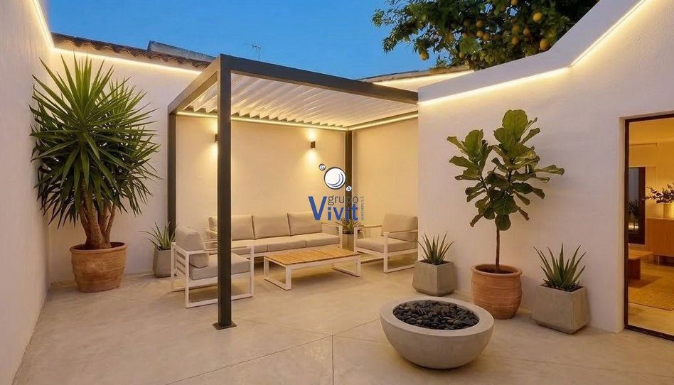 Cuenta con un pequeño porche delantero que da acceso a la vivienda. En la planta baja encontramos un amplio salón-comedor con concepto de cocina abierta, con salida a un patio que aporta ventilación y luz natural, además de una habitación y un cuarto de baño.