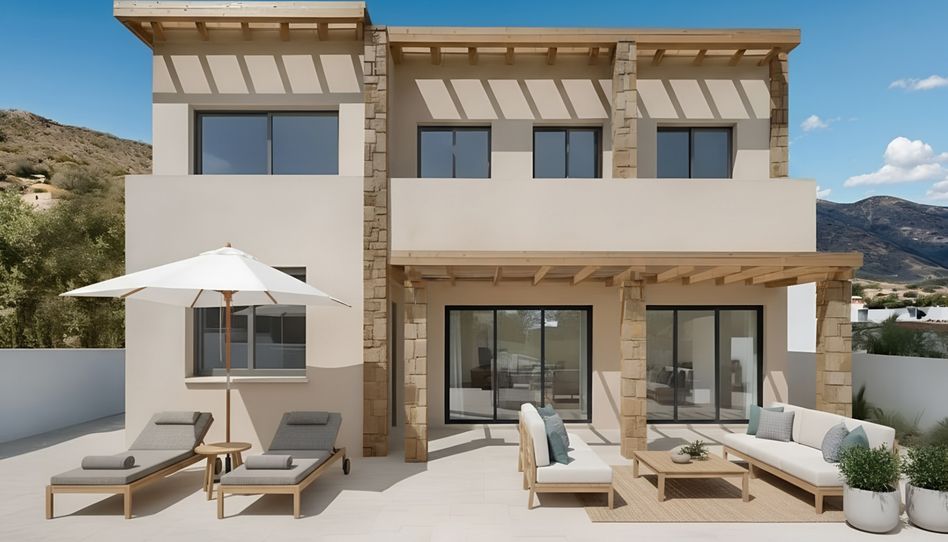 Se accede a la terraza directamente desde la sala de estar-comedor. Separados por puertas correderas de cristal, ambos espacios se pueden unir fácilmente. En el primer piso se encuentran 3 dormitorios más, así como 3 baños, uno de ellos en suite. Además, una terraza de 21m² con una vista de ensueño invita a quedarse. El sótano alberga un garaje subterráneo con espacio suficiente para 2 vehículos y varias otras cosas que se quieran almacenar. En el techo, una instalación fotovoltaica y una bomba de calor de aire aseguran que la villa genere un consumo energético respetuoso con el medio ambiente. Una propiedad de primera en un paisaje verdaderamente de ensueño, no lejos de las playas de la Costa Blanca.