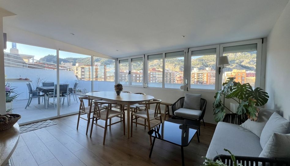 Ático en venta en Alcoy en la zona de Santa Rosa. Increíble terraza de 42m2 con vistas panorámicas. La vivienda dispone de tres dormitorios, salón-comedor, cocina y un baño. Ventanales de PVC oscilobatientes, suelo de tarima y puertas de madera. Calefacción central. Trastero y garaje incluidos en el precio. Posibilidad de una segunda plaza de garaje. [IW]