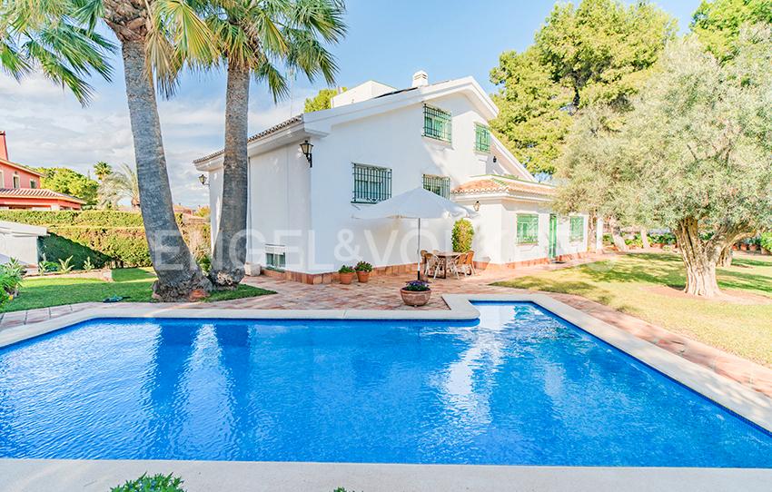 En una de las ubicaciones más tranquilas de vistahermosa en la que disfrutar en familia de su amplia parcela y de su preciosa piscina se encuentra esta bonita villa familiar de estilo mediterráneo.
