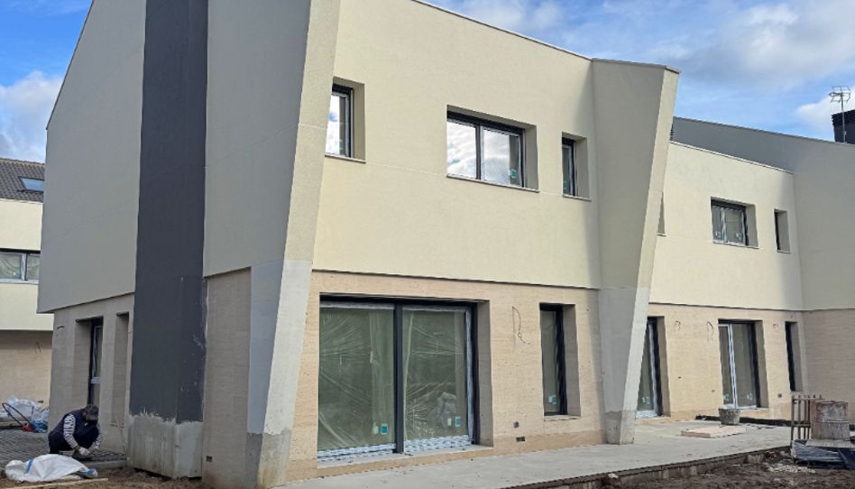 Chalet pareado moderno de 243 m² en parcela de 363 m², con 3 plazas de aparcamiento bajo pérgola, situado en urbanización con piscina y zonas verdes.