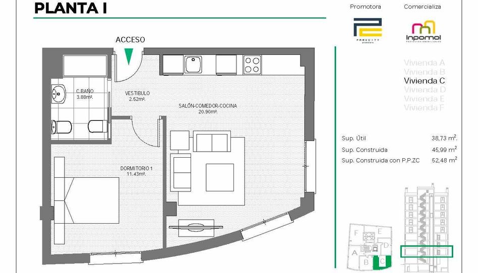Descubre este espectacular apartamento haciendo esquina en el exclusivo Edificio Parkcity, ubicado en la codiciada zona de Autopista, Badajoz. 🏙️ Con una superficie construida de 52.48 m2, esta propiedad es ideal para quienes buscan un hogar moderno con acabados actuales. 🌟 Cuenta con una amplia habitación doble que ofrece confort y privacidad, además de un baño completo elegante ⭐🚿, calefacción por radiadores, pre-instalación de aire acondicionado,...