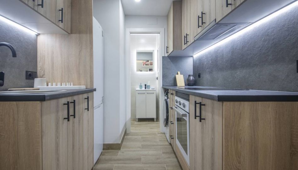 Dispone de un salón-comedor con cocina abierta, completamente equipada con electrodomésticos nuevos (horno, placa, campana extractora, frigorífico y lavadora). El espacio es funcional, luminoso y bien aprovechado.