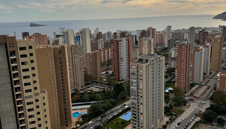 Impresionante estudio en un piso alto (18º) con fachada orientación sur, lo que garantiza luz natural durante todo el día. Desde su ventana y balcón se disfrutan de unas vistas panorámicas al mar (a la bahía de Benidorm) y a la ciudad.