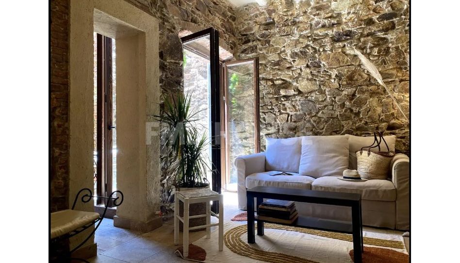 La planta baja de 75 metros cuadrados cuenta con dos habitaciones, un baño, una cocina equipada y un bonito patio. La rehabilitación de la finca, construida en el año 1900, ha conservado las paredes de piedra originales, lo que le da un estilo rústico único. El interior es cálido y confortable, ideal para disfrutar de una vida tranquila y relajada.