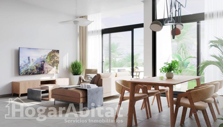 Descubre la elegancia y el confort en este precioso adosado con todas las comodidades que te mereces. Totalmente nuevo, de dos alturas, amplio y muy luminoso, en la sensacional Urbanización Enginent I. La planta baja consta de un amplio y luminoso salón-comedor con salida a una terraza y una cocina americana y equipada. En la primera planta, encontrarás 3 dormitorios dobles, dos de ellos con su propio balcón, y dos baños completos con ducha, uno incoporado en el dormitorio princial. Desde aquí, tienes acceso a un solárium en la planta superior con hermosas vistas de las montañas y sus alrededores. Plaza de garaje incluida en el precio. Cuenta con calidades como armarios empotrados, aire acondicionado, ventanas de aluminio con rotura de puente térmico, puertas macizas, suelo de baldosa y puerta blindada. El residencial dispone de una piscina comunitaria con solárium, jardín y una pista de pádel. Se encuentra en una zona tranquila y excepcional, cerca de la playa, muy bien comunicado por la Av. de Bulgaria, la CV-746 y la Av. de Casanova, facilitando el acceso a todo tipo de servicios. No pierdas esta oportunidad única. Contáctanos para más información o para concertar una visita.