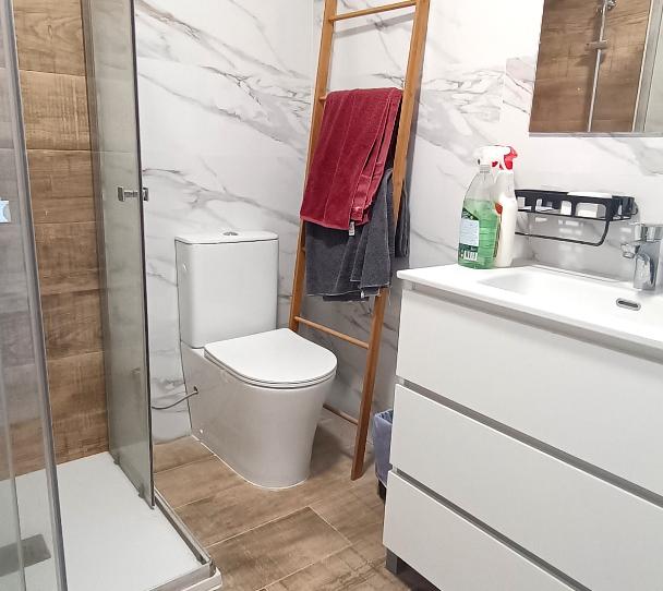 En planta baja encontramos la cocina semi abierta y el salón con salida a la terraza con barbacoa y acceso a la piscina comunitaria. También hay un cuartito usado como lavadero y para el calentador.