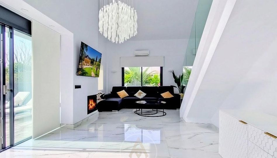 La Zona de Día: El corazón de la vivienda es un majestuoso salón a doble altura, presidido por una chimenea de diseño y envuelto en imponentes ventanales que diluyen la frontera entre el interior y el exuberante jardín. El comedor, de proporciones nobles, se integra magistralmente con una cocina de autor, equipada con tecnología de última generación y articulada en torno a una magnífica isla central. Desde este núcleo social, el acceso a las terrazas y a la zona chill-out es directo, invitando al disfrute del clima mediterráneo.