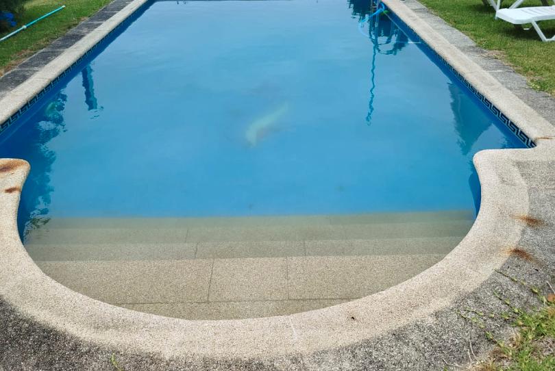 TERRENO DE 600M2,DE VARIAS ALTURAS,DONDE HAY UNA PISCINA,CENADOR,GARAJE Y UN GALLINERO.