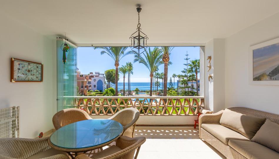 Impresionante apartamento en 1ª línea de playa, planta media, con espectaculares vistas al mar, la playa, Gibraltar y África, situado en la exclusiva Bahía de Casares junto a una zona histórica protegida con torre árabe, dentro del prestigioso complejo La Perla de la Bahía de diseño único que combina estilos andaluz y árabe, rodeado de jardines exuberantes, piscinas (dos climatizadas), fuentes decorativas y zonas de descanso; a solo 2 minutos a pie de tres playas, dos restaurantes de renombre y el famoso resort de golf Finca Cortesín, premiado como Mejor Resort de Golf de España y sede de la Solheim Cup 2023; estratégicamente ubicado entre Estepona, Puerto de la Duquesa y Sabinillas, a solo 5 minutos en coche, con fácil acceso a tiendas, ocio y otros campos de golf; comunidad cerrada con seguridad 24h y videovigilancia; incluye una plaza de garaje y trastero; ideal tanto como residencia de ensueño como inversión con alto potencial de alquiler.