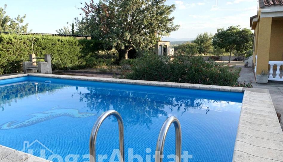 Imagina vivir rodeado de la naturaleza, en un entorno tranquilo y sereno, este inmueble es para ti. Magnífico chalet en suelo rústico, con amplia y luminosa vivienda, en una parcela de 3161 m2, situado en la sensacional zona de Los Felipes, Chiva. La casa de techos altos se encuentra distribuida por una terraza al ingresar, conectada con un luminoso y gran salón-comedor con chimenea, cuatro dormitorios, tres de ellos dobles, una amplia cocina es independiente y equipada, con salida al exterior, un trastero y un espacioso baño completo con bañera. Está adaptada con acceso para personas con movilidad reducida. Este encantador chalet también dispone de una gran piscina con depuradora de 4 metros x 8 metros, un jardín, plaza de garaje, amplia parcela y un paellero. El inmueble viene con agua y luz por red y fosa séptica. Cuenta con calidades como aire acondicionado por splits en pared con bomba de frío/calor, ventanas y puertas de madera, y suelo de terrazo. Situado en una zona tranquila y solicitada de Chiva, el chalet está bien comunicado por la CV-417 y la Autovía del Este, facilitando el acceso a todo tipo de servicios. ¡No dejes escapar esta inigualable oportunidad!