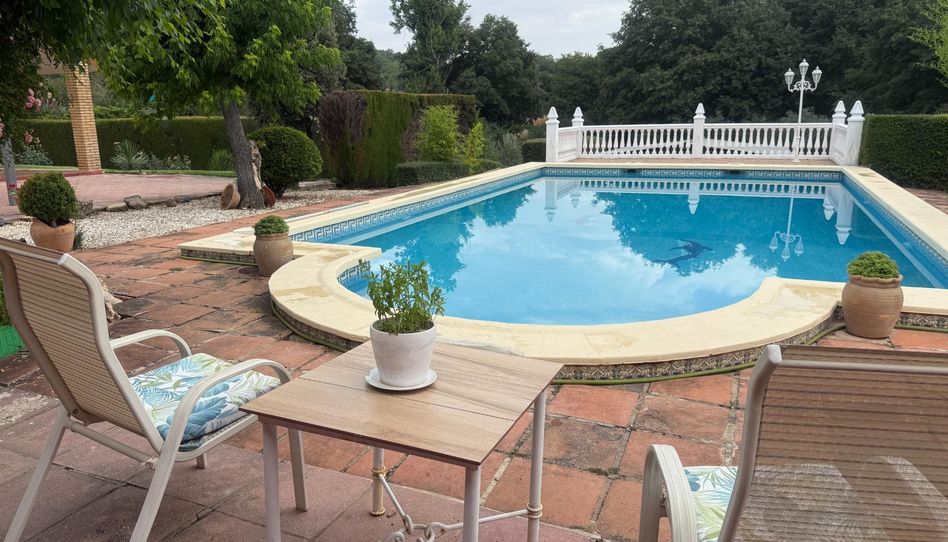En la parcela se encuentra construido un chalet de 310 m2 de dos plantas y un amplio porche (con casi de 185m2), más otra edificación independiente usada como bodega/salón campero (casi 70m2), además tiene piscina, amplia zona barbacoa/merendero exterior , varios cuartos trasteros y de aperos ( 35m2), y áreas de jardines y juegos.