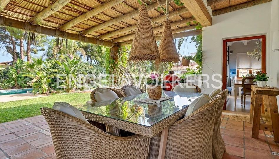 Esta villa les presenta Engel&Voelkers, su agencia inmobiliaria para propiedades de lujo en la Costa Blanca. La Villa fue construida en 1980 y completamente reformada hace pocos años. Está ubicada cerca de la playa de La Marieta Casiana, del Club Náutico y del centro de Denia. La parcela cuenta con casi 1.600 m2, puerta automática de acceso para vehículos y puerta de acceso peatonal. La reforma ha sido ejecutada con materiales de alta calidad. Los 331 m2 de construcción se distribuyen de la siguiente manera: La planta baja ocupa una superficie de 175 m2 y tiene porche cubierto en la entrada, recibidor salón, amplia cocina y comedor, dos habitaciones dobles, un cuarto de baño, un generoso lavadero que da acceso al garaje y la naya cubierta con espectaculares vigas de madera y techo de cañizo con comedor de verano y zona de barbacoa. Una amplia escalera le da acceso a la entreplanta donde se encuentra una habitación doble y un cuarto de baño. La primera planta tiene 106 m2 y se distribuye en un dormitorio doble y la gran suite con cuarto de baño, vestidor y acceso a una terraza con vistas despejadas. La casa cuenta con: chimenea de tosca, aire acondicionado, calefacción con radiadores, amplios ventanales con persianas, mosquiteras y rejas, un precioso jardín mediterráneo con una piscina de 10X5m rodeada de árboles y plantas autóctonas entre rocallas y un pequeño estanque con puente de madera que da acceso una casita de madera que puede ser usada como habitación de invitados. Además encontramos un acogedor espacio de aseo de verano con ducha en el exterior de estilo ibicenco.