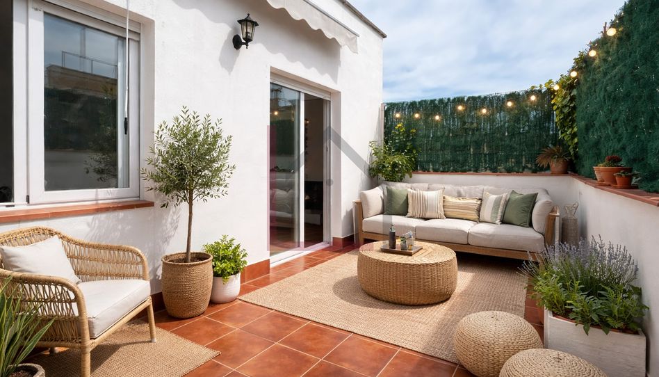 En cuanto a calidades, la vivienda dispone de suelos de terrazo y gres, puertas de madera pintadas en blanco y carpintería exterior de aluminio lacado en blanco. Además, cuenta con aire acondicionado con bomba de calor, garantizando confort durante todo el año.