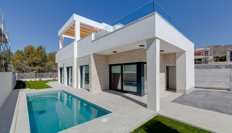 2. Casa/Chalet → Villa en Finestrat zona Sierra cortina, 137.10 m. de superficie, 420 m. superficie parcela, 60.25 m2 de terraza, 3000 m. de la playa (5 MINUTOS A LAS PLAYAS), 3 habitaciones dobles, 2 baños, propiedad en Obra Nueva, cocina equipada, carpinteria interior de lacado blanco, orientación este oeste, suelo de gres porcelánico, carpinteria exterior de aluminio rotura puente térmico.