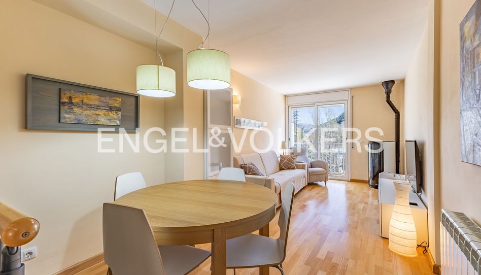 Engel & Volkers presenta esta acogedora casa adosada cerca de las pistas de esquí en Guardiola de Berguedà. Casa pareada de 113 m² construida en 2006 se compone de planta baja con su recibidor y con acceso al garaje y al jardín privado, en la primera está la zona de día con su cocina equipada y con el comedor con salida al balcón orientado al este. En la segunda planta se halla la zona de noche, con dos dormitorios y un baño completo. También tenemos un espacio diáfano abuhardillado donde se puede cabe otra habitación. La calefacción es de gas y en el comedor tenemos una moderna estufa de pellet. La ubicación y las vistas son excelentes. El garaje está incluido en el precio.