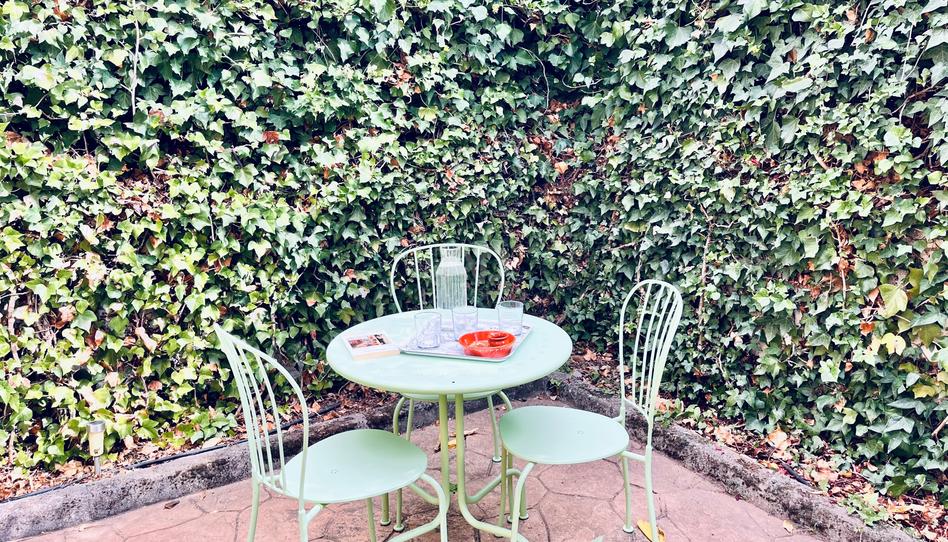 La vivienda, rodeada por un cuidado jardín privado de entrada. Este espacio exterior, perfectamente pavimentado y rodeado de vegetación, crea un ambiente acogedor ideal para disfrutar del aire libre, leer o relajarse bajo la sombra de los árboles.