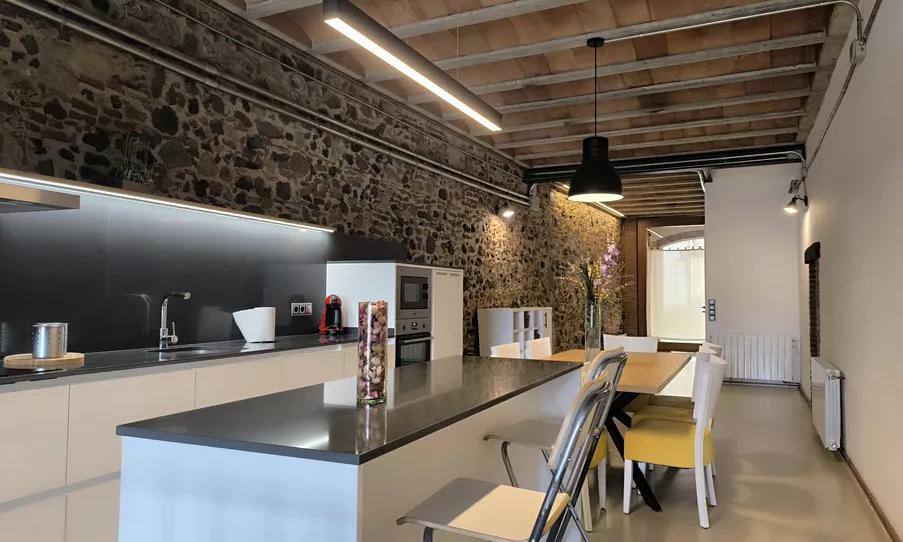 Totalmente reformada respetando el estilo original de la casa con un estilo vanguardista, con materiales nobles, conservando el estilo rústico, trabajando varios materiales como vidrio, hierro y la misma piedra natural de la casa.