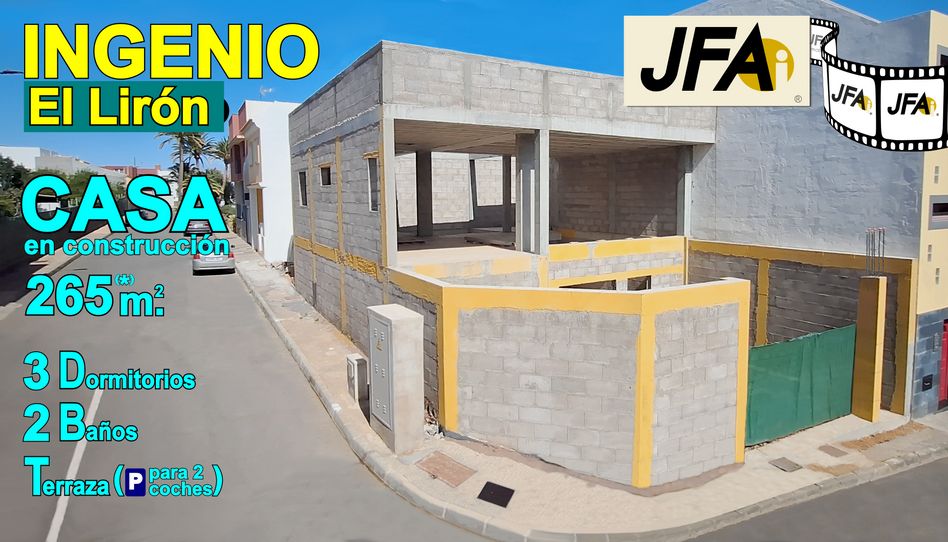Te presentamos esta vivienda unifamiliar de tres dormitorios y dos baños en construcción, que se levanta sobre una parcela de 148 m.² en el conocido y tranquilo Barrio del Lirón, en el Municipio de Ingenio, al sureste de la isla de Gran Canaria. Se encuentra a tan sólo 5 minutos en coche de la autopista GC-1, la principal arteria de comunicación de la isla.