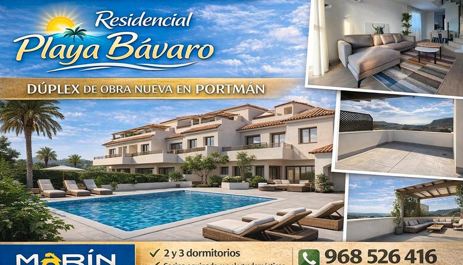 DUPLEX SITUADO EN PORTMAN. Residencial Playa Bávaro es un exclusivo conjunto de 39 dúplex de nueva construcción, ubicados en una de las zonas más privilegiadas de Portmán y diseñados para disfrutar del auténtico estilo de vida mediterráneo en un entorno excepcional. Las propiedades constan de 2 y 3 dormitorios y cuentan con cocinas equipadas con electrodomésticos de alta gama, solárium privado con vistas de 360º al mar y amplios garajes privados cerrados. La urbanización cuenta con zonas comunes, tales como piscina comunitaria y espacios ajardinados, perfectos para tomar el sol, relajarse o compartir momentos inolvidables. Precios desde 198.000€ mas IVA