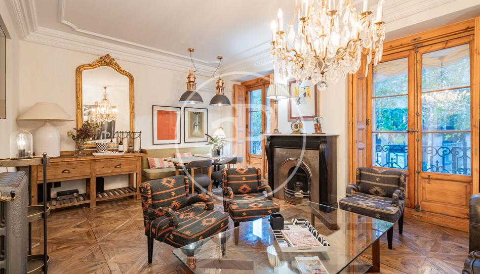 Aproperties presenta exclusivo piso en calle Carranza exterior recién reformado. Cuenta con una superficie de 100 m² construidos según catastro. Sus materiales son de altísima calidad y muy especiales: suelos de roble francés, ventanales de suelo a techo en el salón, impresionantes molduras, porcelánicos italianos. La zona de día incorpora un amplio salón con dos balcones y una cocina acristalada totalmente equipada con electrodomésticos de alta gama. La zona de noche cuenta con un espacioso dormitorio, un cómodo y elegante vestidor y un enorme baño. Sus muebles son una preciosidad y están incluidos. Cuenta con aire acondicionado, bomba frío y calor y calefacción central a gas.