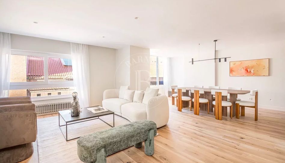 BARNES Madrid presenta una espectacular vivienda reformada íntegramente, concebida por un estudio de arquitectura para ofrecer amplitud, luz y una estética contemporánea de líneas limpias. Con una superficie generosa y una distribución muy equilibrada, la propiedad destaca por su gran zona social abierta, donde salón, comedor y cocina se integran en un espacio fluido y luminoso, realzado por sus agradables vistas abiertas, que aportan una sensación constante de amplitud y conexión con el exterior.
