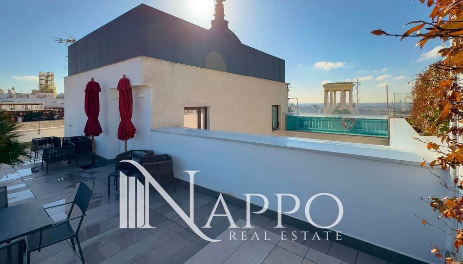 SIN COMISIÓN AL COMPRADOR, Nappo Real Estate presenta esta maravillosa vivienda en segunda planta exterior con vistas directas a la Gran Vía; un piso esquinero lleno de luz natural gracias a su orientación sureste. El paraíso lo tenemos en la última planta con impresionantes vistas panorámicas 360º a todo Madrid, piscina privada con solárium, gimnasio totalmente equipado y una fabulosa terraza con diferentes ambientes.