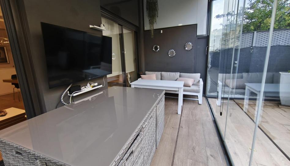 La principal, de 59 m², con acceso desde el salón y los tres dormitorios, parcialmente techada y cerrada con cortinas de cristal, perfecta para usarla todo el año como zona de estar, comedor o chill-out.