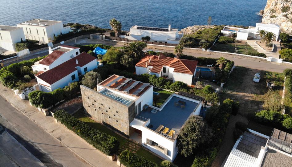 Esta impresionante casa desde la que se pueden admirar magníficos atardeceres sobre el Mediterráneo se ubica en la hermosa urbanización residencial y turística de Es Canutells, al sur de la isla, cerca del pueblo de Sant Climent, del aeropuerto y de Mahón.